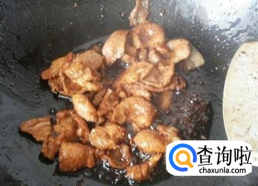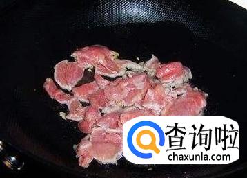 锅中放入食用油,油热了以后,放入肉片儿快速翻炒,再加入少许酱油,增加香味儿。