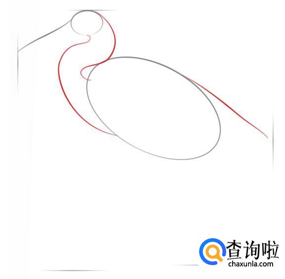 画出白鹭的脖子,要有弯度,尾部的线条也勾画一下。