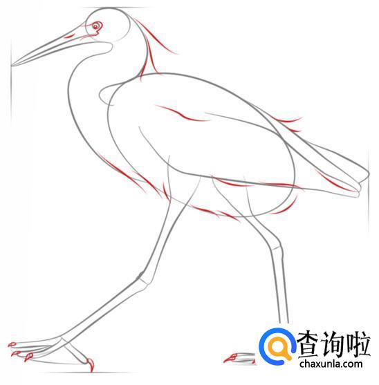 增加一些羽毛的细节,腿上画出纹路就可以了。这样一只白鹭就画好了。