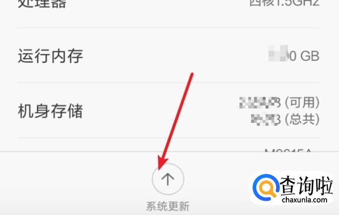 在关于手机页面,最下方有一个‘系统更新’的按钮。点击打开它。