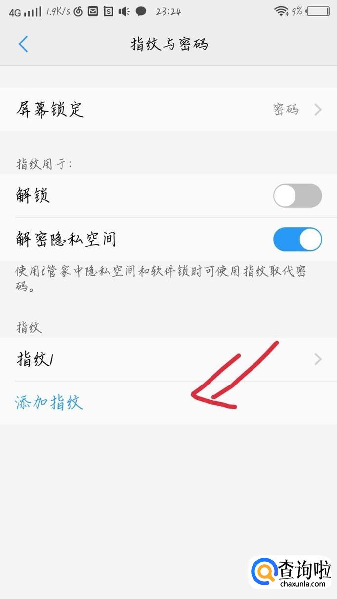点击“添加指纹”这个选项,如图1箭头所示。这样就可以添加一个新的账户啦。