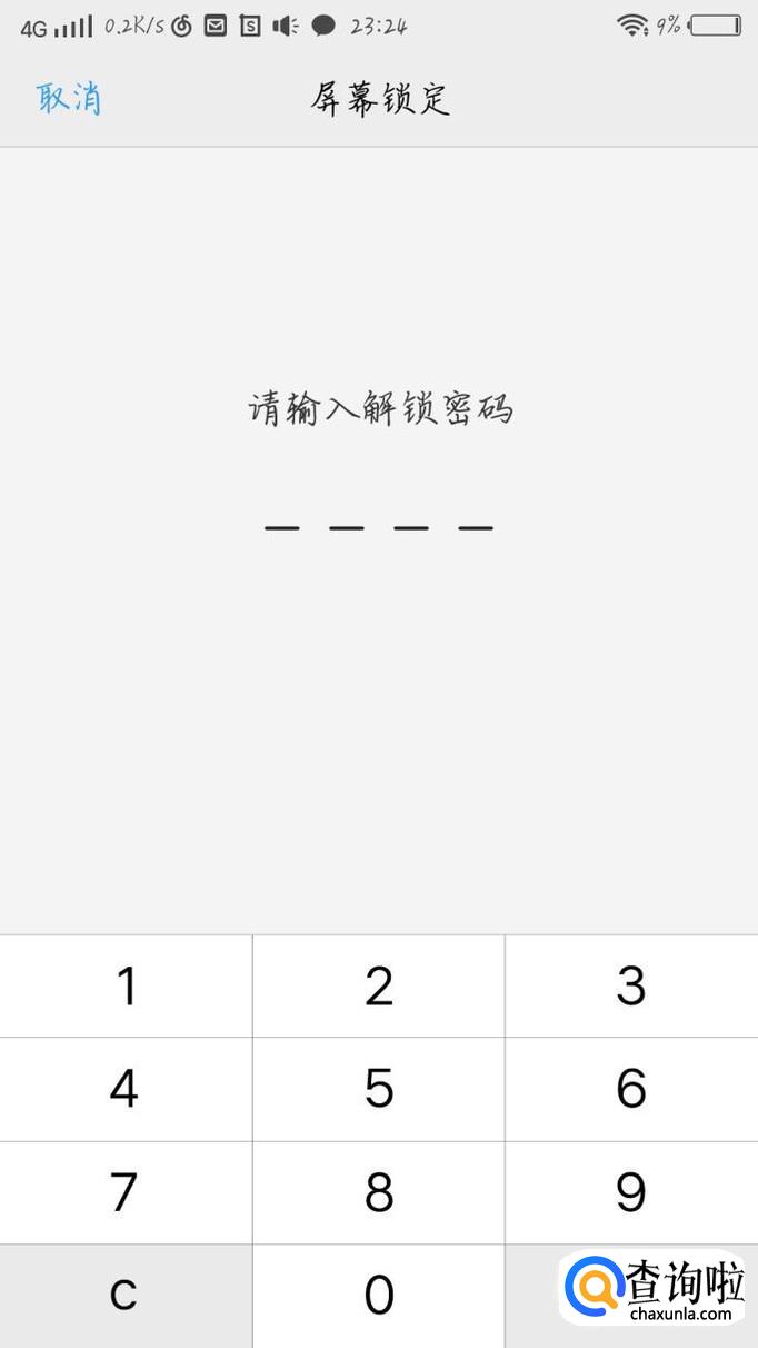 如果你的手机有解锁密码的话,就输入你的解锁密码,如图1所示。输入后会进入一个新的界面,如图2所示。