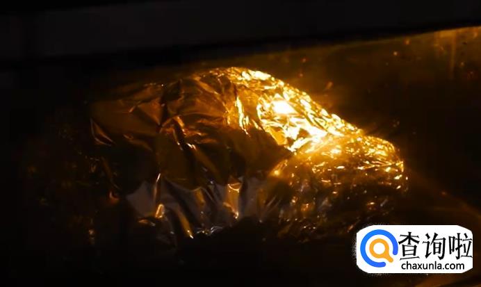 包裹起来后放入微波炉,上下温度220,烤35分钟。