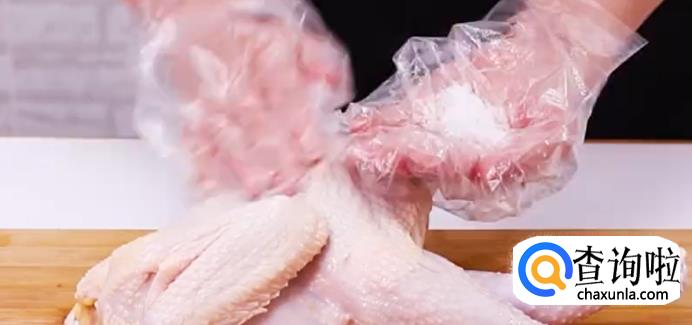 给鸡抹一层精盐。