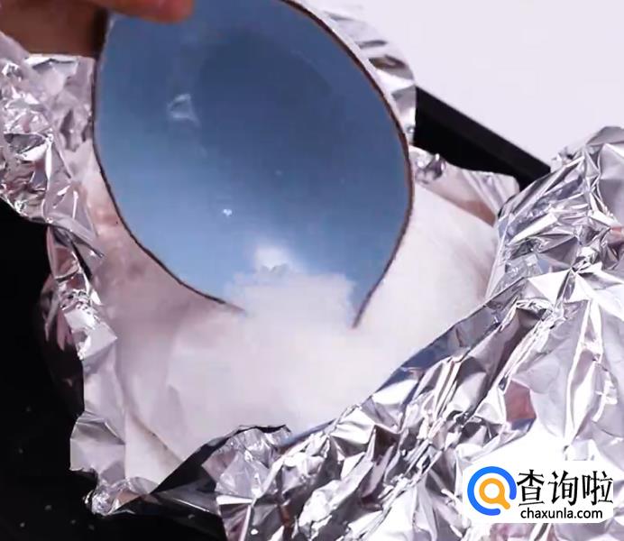 锡纸上铺满150克的粗盐。