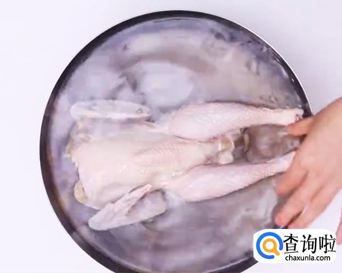 将鸡去头去爪后,放水里泡30分钟去血水。