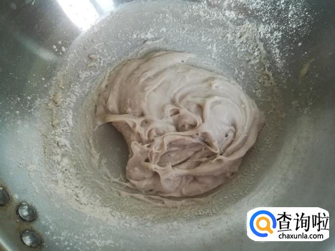 直至把面粉全部撒入锅内,把面糊搅成稠状的面团。