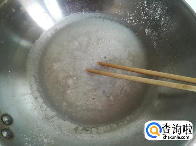 水开后调成中火,一手给锅里撒面,一手用筷子搅拌锅里的面粉,慢慢的把小疙瘩搅匀。