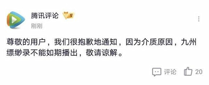从介质的含义来看,腾讯所表达的《九州缥缈录》撤档原因是由于自身视频出了问题,不知道网友能不能接受这样的说法?