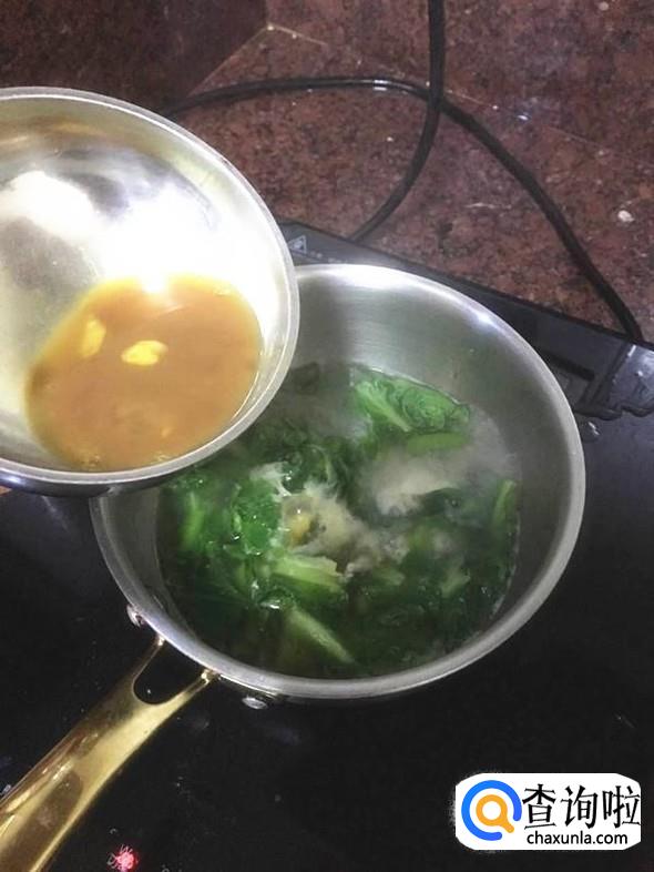 再倒入调味好的鸡蛋,尽量倒在水开的地方,煮出来的蛋花更多