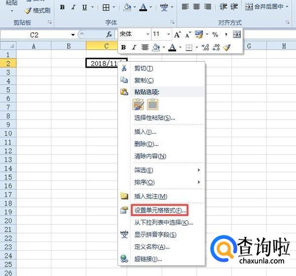 之后我们选中这个单元格,然后我们右击选择设置单元格格式;