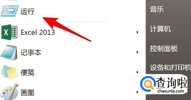 然后点击开始菜单上的运行。
