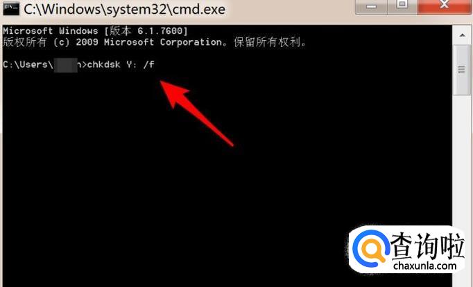 打开dos窗口,在上面输入chkdsk Y: /f 命令,点击回车键运行命令就行了。