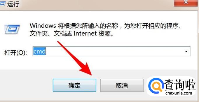 打开后输入cmd,点击确定按钮。