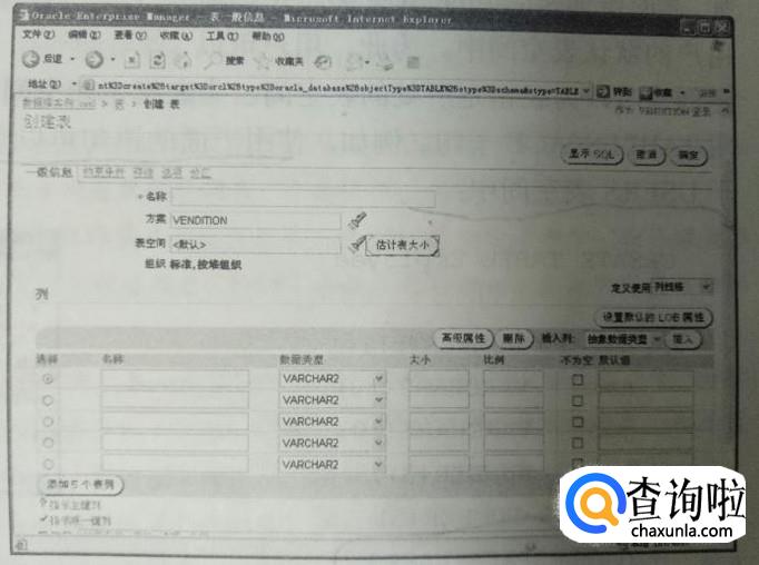 从数据库用户角度看,数据库中的数据是以表、视图等方式储存的。那么用户自己是怎么创建表的呢?简单的有两种方式,一种是用户可以在Oracle提供的SQL*Plus中使用CREATE TABLE语句创建表,也可以通过OEM图形化工具创建表。