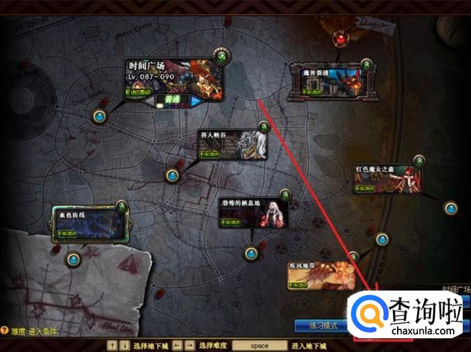 首先,玩家可以从时空之门、能源中心、寂静城和地轨中心这四个区域进入地下城的选择界面,点击右下方的“挑战深渊派对”。