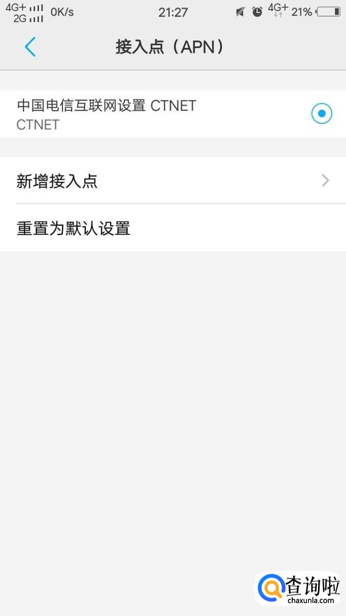 然后,我们点击"接入点(APN)",进入以后我们可以看到有一些选项。