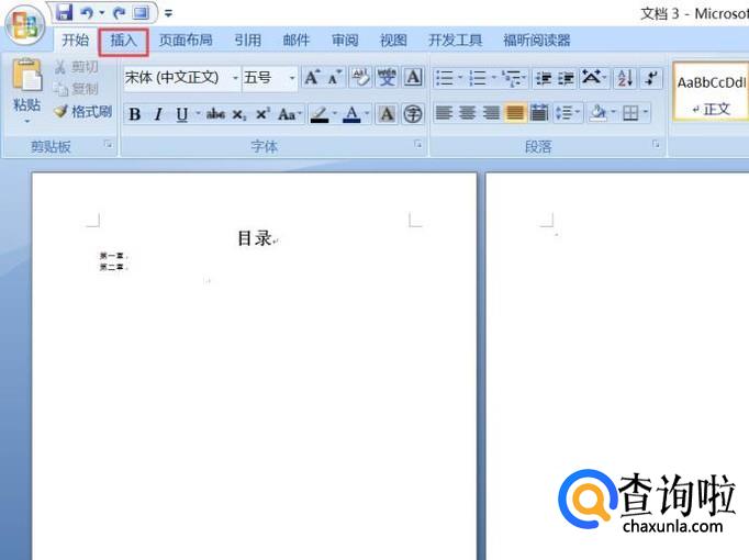 首先,我们打开一个有目录的word文档,然后点击插入;