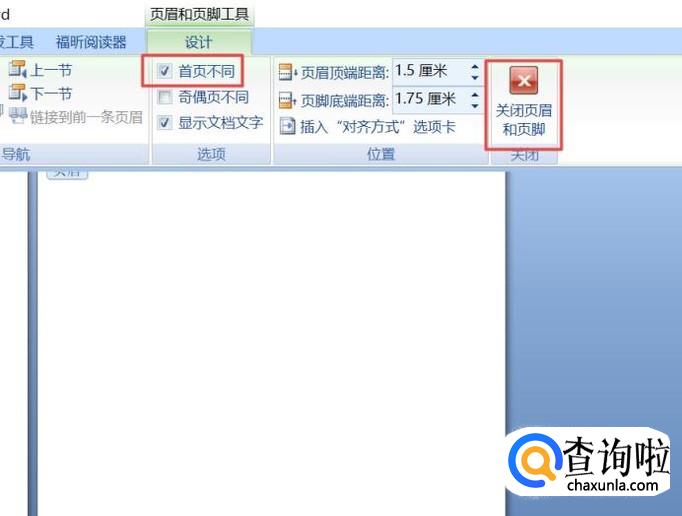弹出的界面,我们将首页不同给勾选上,这样目录也就不会有页码了,之后我们点击关闭页眉和页脚就可以了。