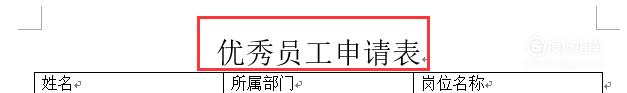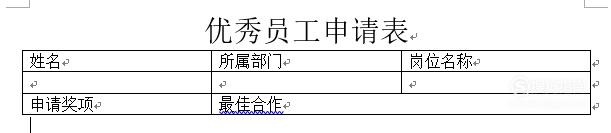 先要有一个表头,写上“优秀员工申请表”等字样。