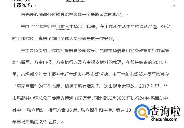 然后开始申请陈述,先感谢领导给予这样的机会,然后罗列自己为公司做出的贡献和成绩。
