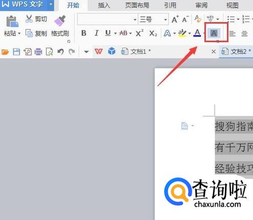 选择文字之后我们在上面找到字符底纹选项,如图所示: