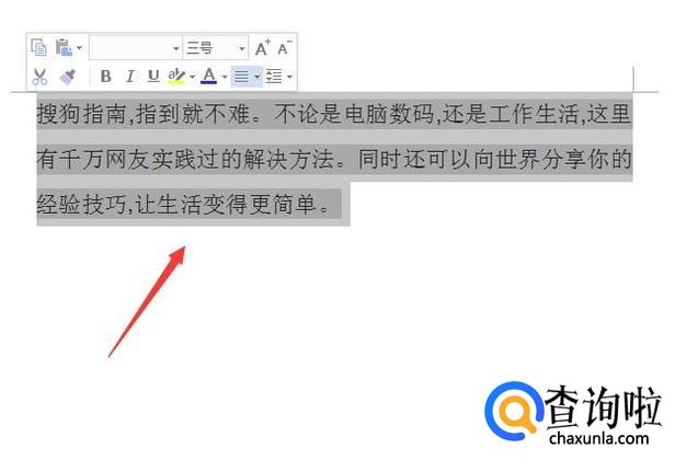 我们按下Ctrl+A键将文字全部选择,如图所示: