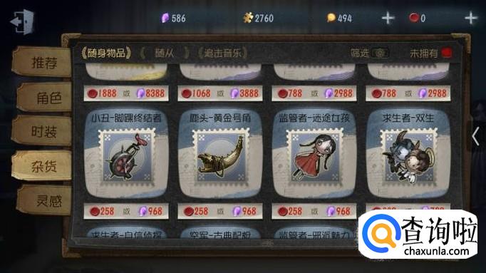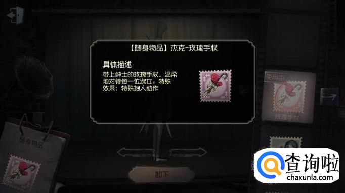 接着我们在这个里面找到杂货页面,一直往下面翻就可以找到玫瑰手杖的随身携带物品。