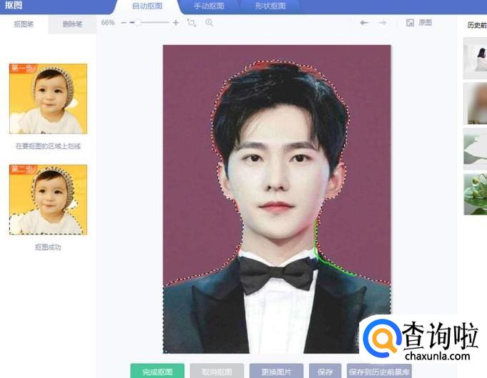 选择自动抠图、手动抠图或形状抠图,抠选出图像部分后,点击完成抠图。