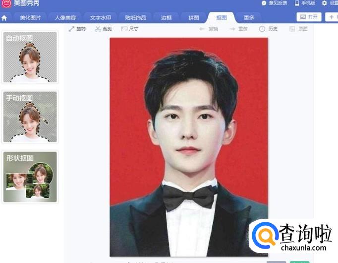 打开电脑版的美图秀秀进入右上角的抠图功能,打开需要变换背景色的图片。
