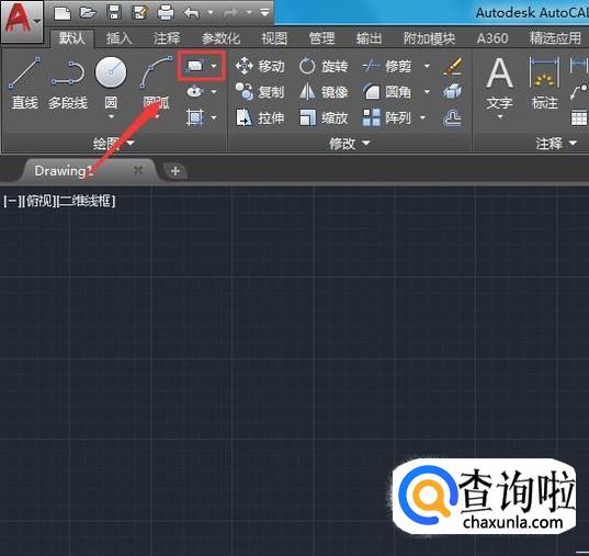 打开CAD之后我们在绘图里找到矩形选项,如图所示: