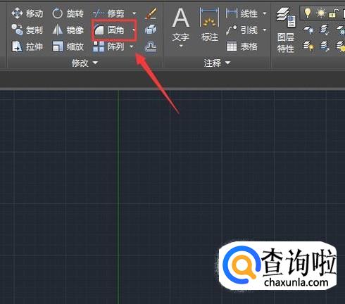 绘制好矩形之后我们在修改里找到圆角选项,如图所示: