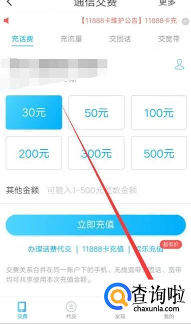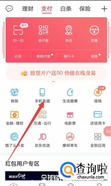 进入之后,点击“手机充值”,进入下一页面,如图所示。