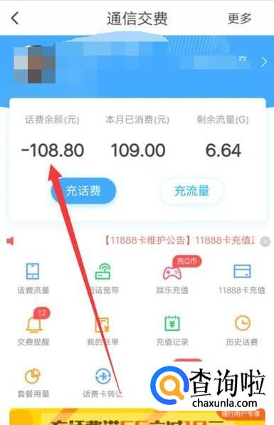 进入之后,即可看到话费余额,如图所示。