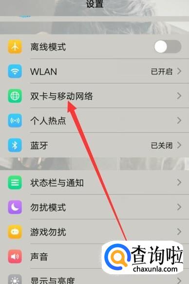 进入之后,找到“双卡与移动网络”,点击并进入下一页面,如图所示。