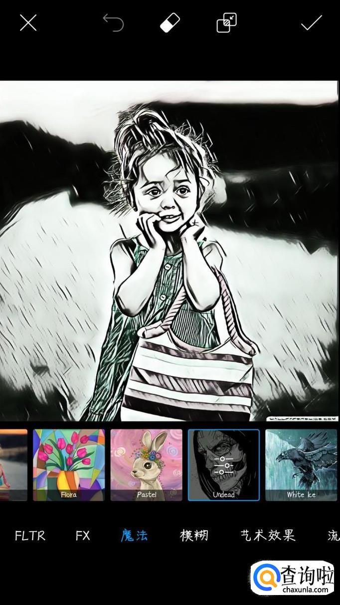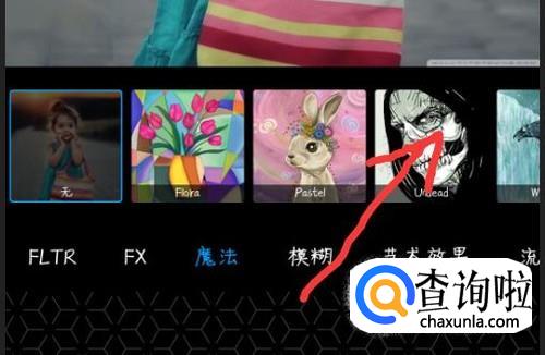 选择下方工具栏中的特效,找到魔法,向右滑动,找到漫画