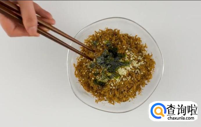 猪里脊肉500g、生抽适量、老抽适量、葱、姜适量、糖、盐适量、海苔、熟芝麻适量
