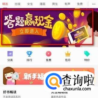 打开已经下载好答题软件,首页上有答题赢现金的通道,点击进入即可。