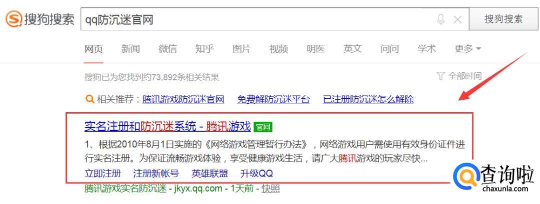 打开搜索“QQ防沉迷官网”,点击第一个链接进入;