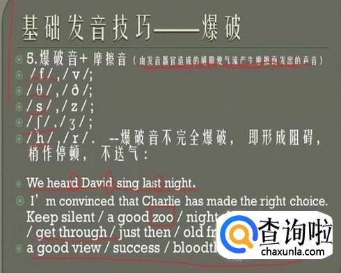 当你做到以上三步时,你的听力基础初现雏形,因为,在真正的听力练习或者对话中,会有一系列的语法现象,使得每个单词发音的组合并不是句子的发音。我例举一个失爆现象,即失去爆破。在六个爆破音/p b t d k g/中,任意