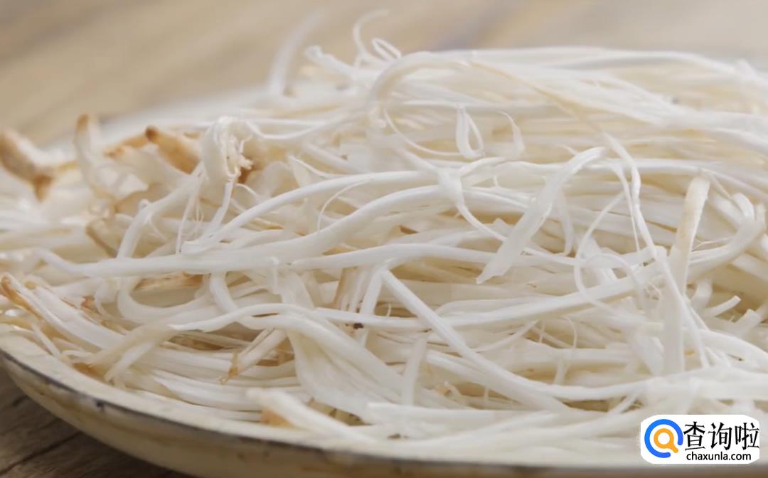 在金银蒜上,均匀的放上鸡枞菌丝。