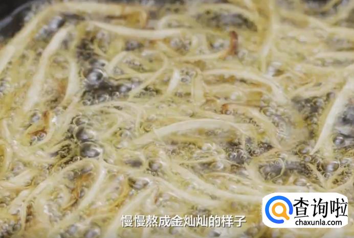 加一点盐和糖调味,慢慢熬成金灿灿的样子后,倒出备用。
