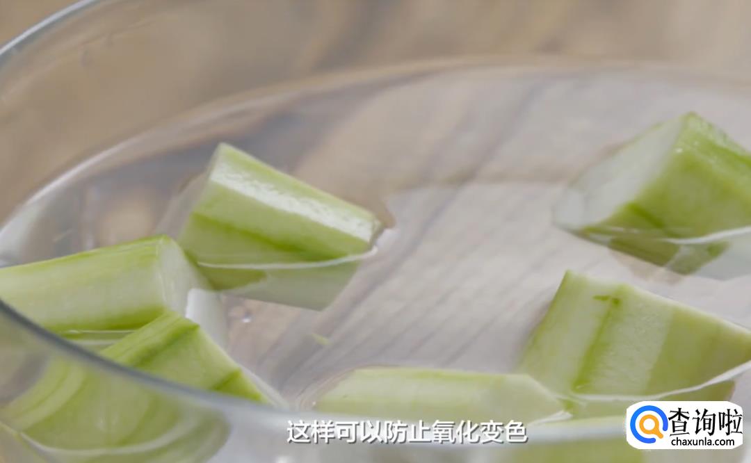1、丝瓜非常容易氧化,所以处理丝瓜的时候,会把它放在淡盐水里面,这样它不会发黑。