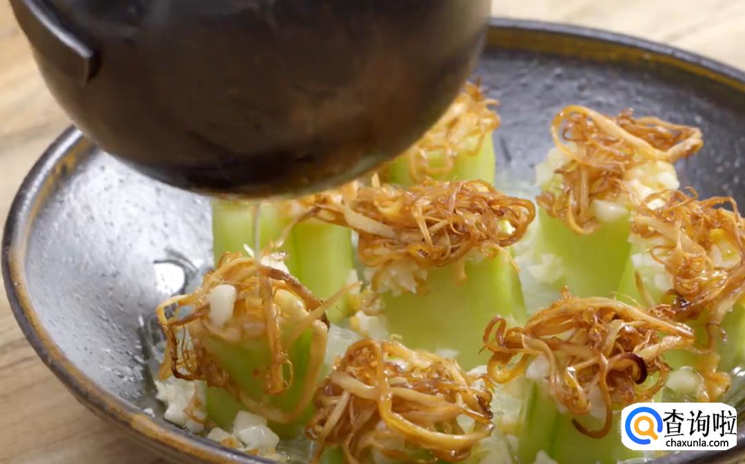 4、这道菜用了金银蒜,用炸熟的蒜香味很足,而生蒜维生素c的含量很高,所以让两者混合在一起。