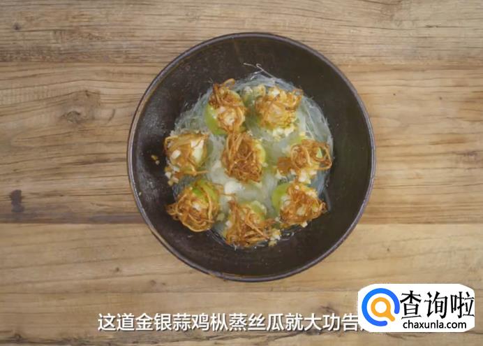 这样,金银蒜鸡枞蒸丝瓜就做好了。