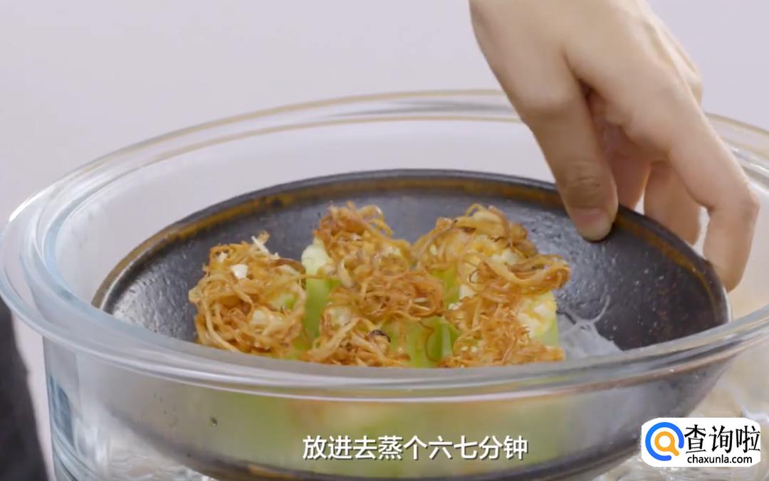 待蒸锅内水烧开后,将其放入蒸六七分钟后取出。