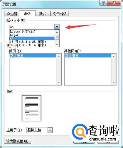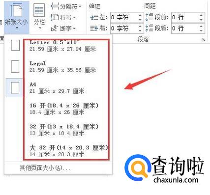 点击纸张大小在其下拉菜单那里找到可以找到很多预置选项,如图所示: