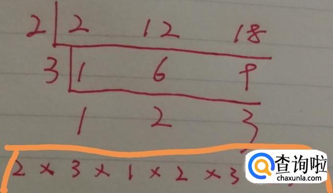 把短除法边缘的所有数值相乘起来,得到的积就是这三个数的最小公倍数。