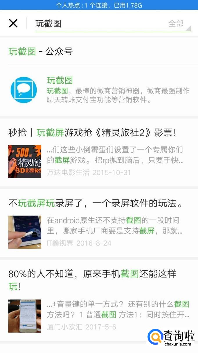首先我们打开手机登录微信,在公众号中搜索"玩截图"
