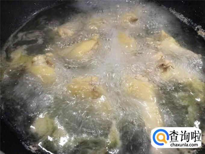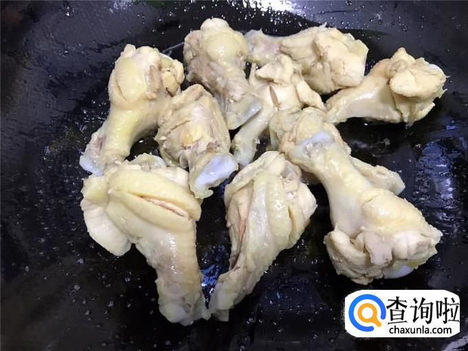 放入小鸡腿用小火稍为煎一下。
